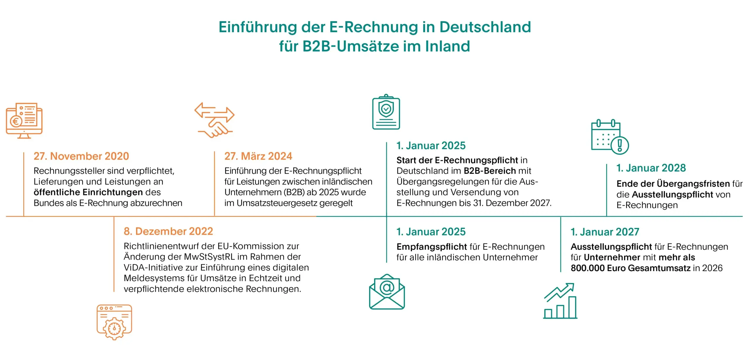 Für Leistungen zwischen umsatzsteuerlichen Unternehmern wurde in Deutschland bereits zum 1. Januar 2025 die E-Rechnungspflicht eingeführt.